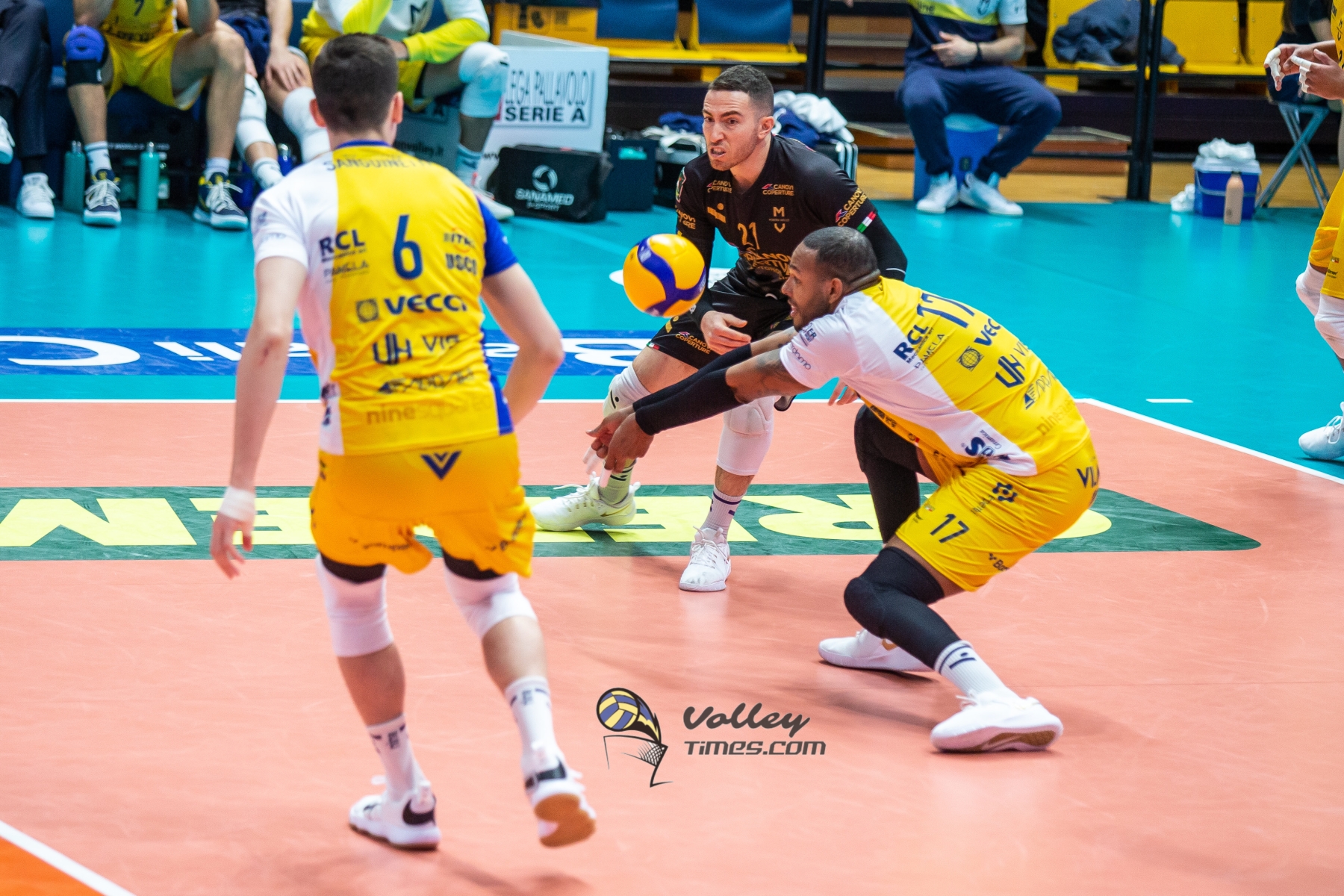 Top Volley Cisterna: Baranowicz 3, Maar 21, Bossi 9, Dirlic 20, Rinaldi 24, Zingel 2, Picchio (L), Wiltenburg 3, Cavaccini (L), Saadat 1, Raffaelli 0. N.E. Giani. Coach. Soli.