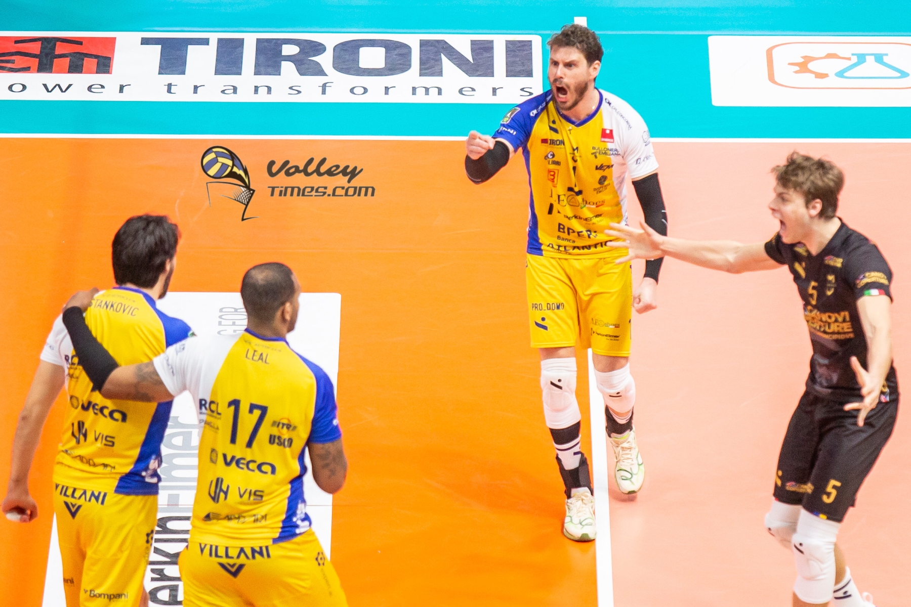 Leo Shoes PerkinElmer Modena: Mossa De Rezende 0, Ngapeth E. 16, Mazzone 6, Abdel-Aziz 14, Leal 17, Stankovic 7, Rossini (L), Gollini (L), Van Garderen 0, Sanguinetti 0. N.E. Ngapeth S., Sala, Salsi. Coach. Giani.