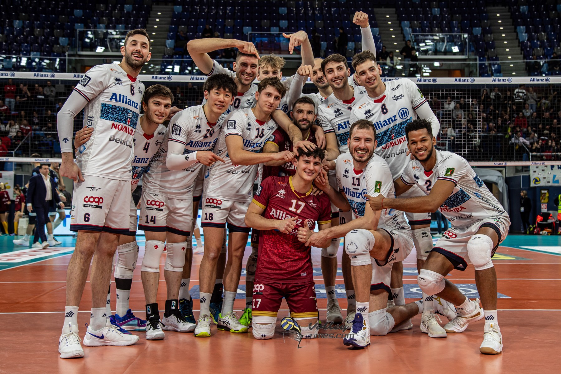 ALLIANZ MILANO: Porro 3, Kaziyski 8, Piano 5, Ishikawa 13, Loser 10, Reggers 14, Mergarejo 1, Vitelli, Dirlic 1, Zonta. N.e. Colombo (L2) e Innocenzi. Coach. Roberto Piazza.