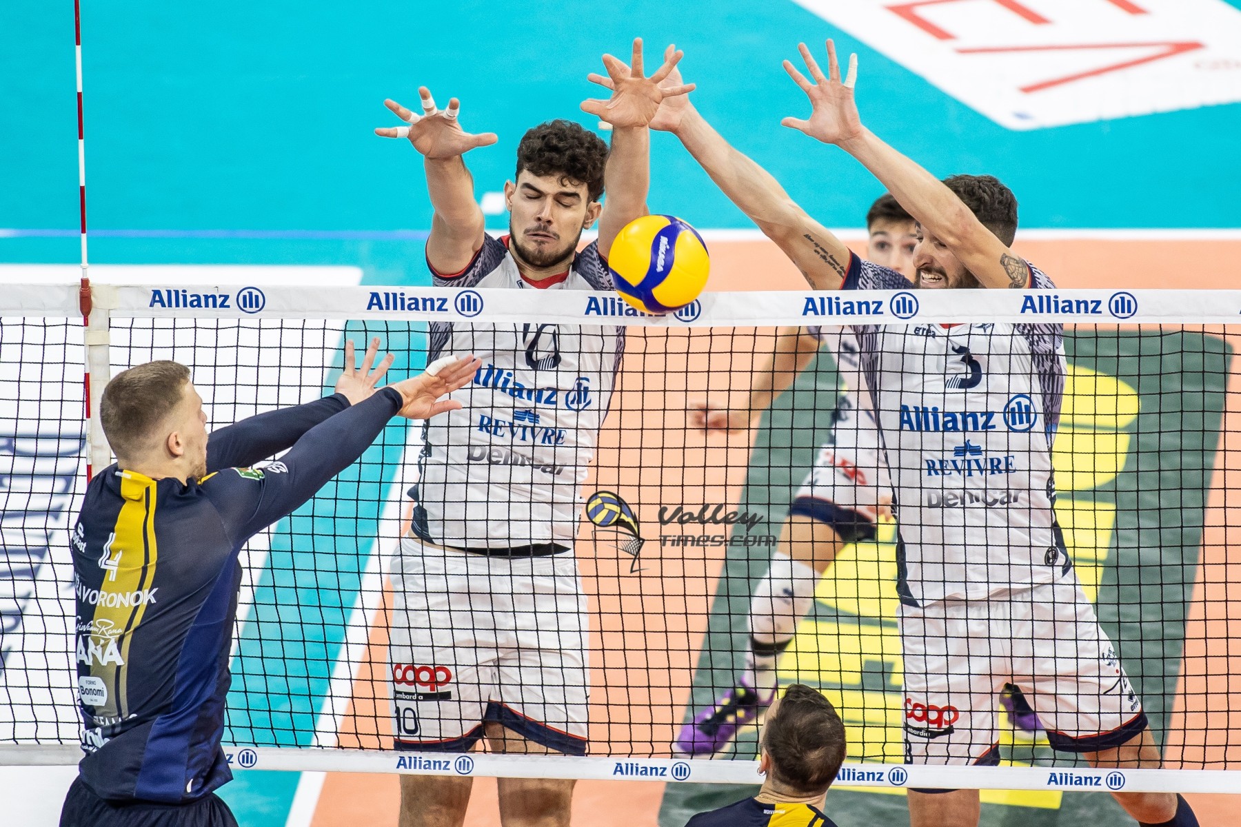 Allianz Milano: Porro 4, Louati 15, Schnitzer 9, Reggers 18, Kaziyski 13, Caneschi 5, Gardini (L), Staforini 0, Larizza 0, Zonta 0, Catania (L), Barotto 1, Otsuka 0. N.E. Piano. Coach. Piazza.