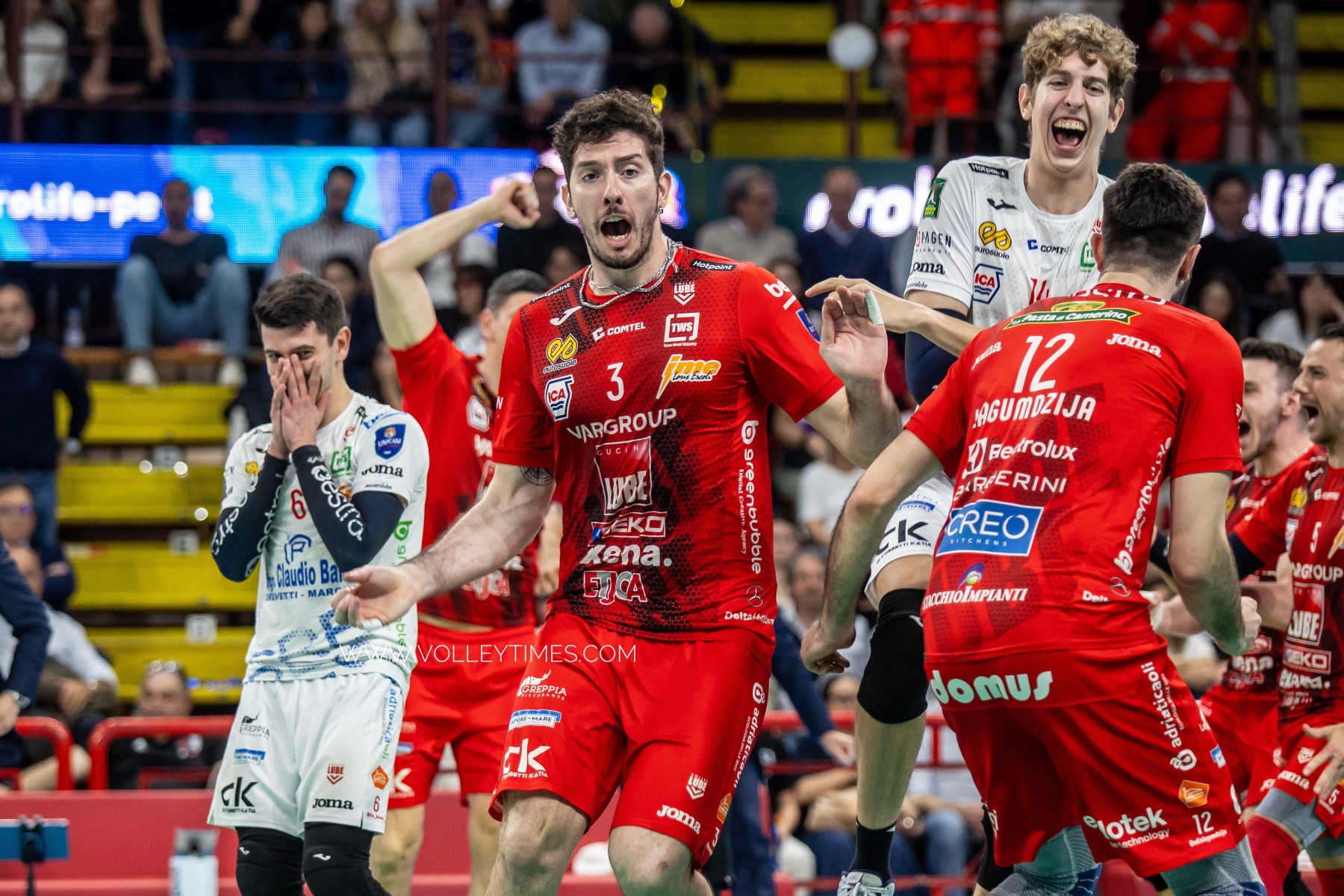 Cucine Lube Civitanova: Boninfante 1, Bottolo 16, Gargiulo 11, Lagumdzija 18, Nikolov 16, Chinenyeze 6, Bisotto (L), Balaso 0, Hossein Khanzadeh 3, Dirlic 0. N.E.Tenorio, Loeppky, Orduna, Podrascanin. Coach. Medei.